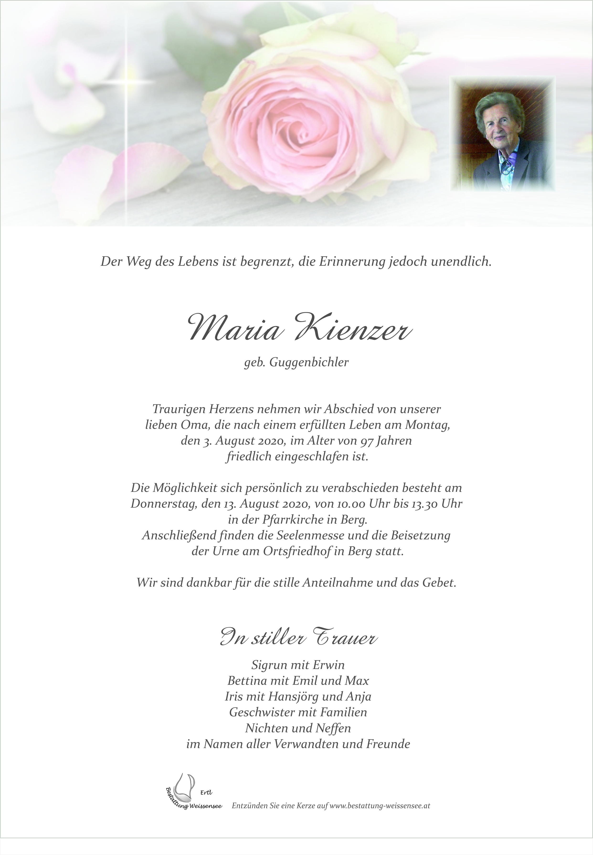 Friedhof Berg, † 03.08.2020 (97 Jahre)