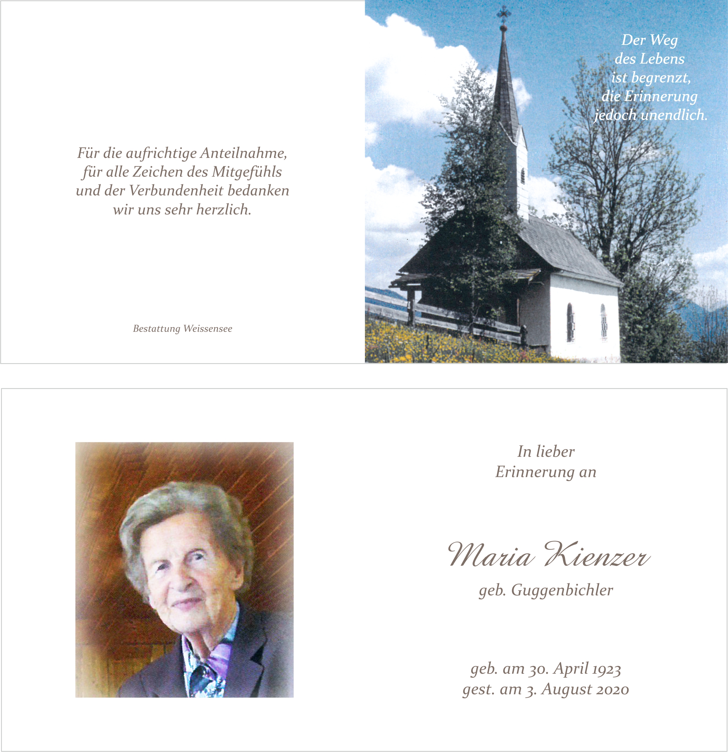 Neue Kerze für Maria Kienzer entzünden.