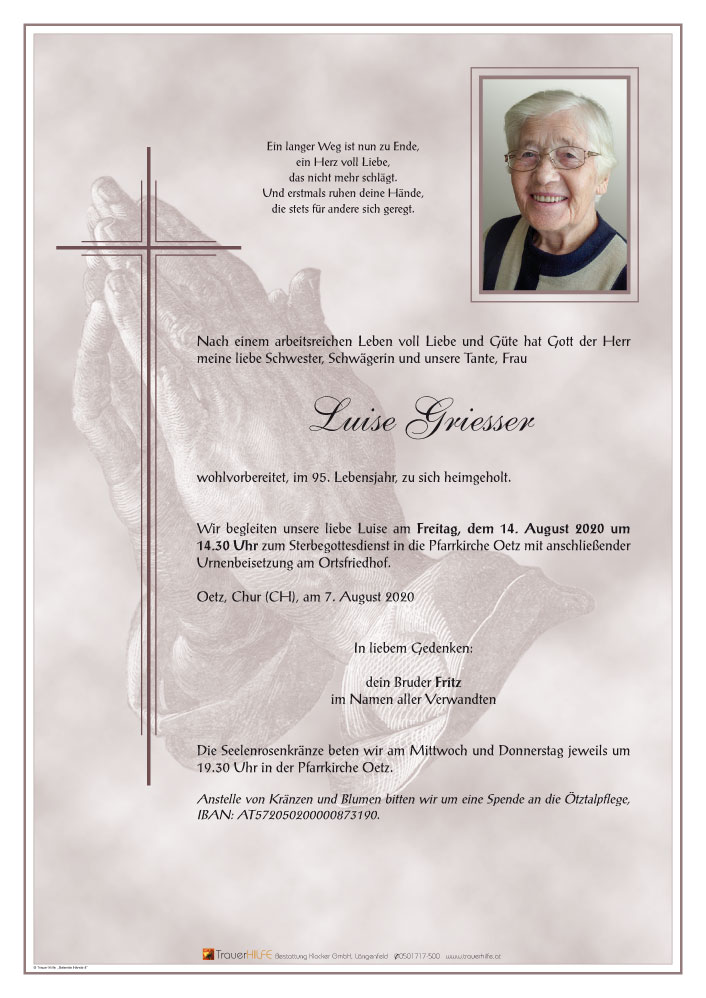 Friedhof Oetz, † 07.08.2020 (94 Jahre)
