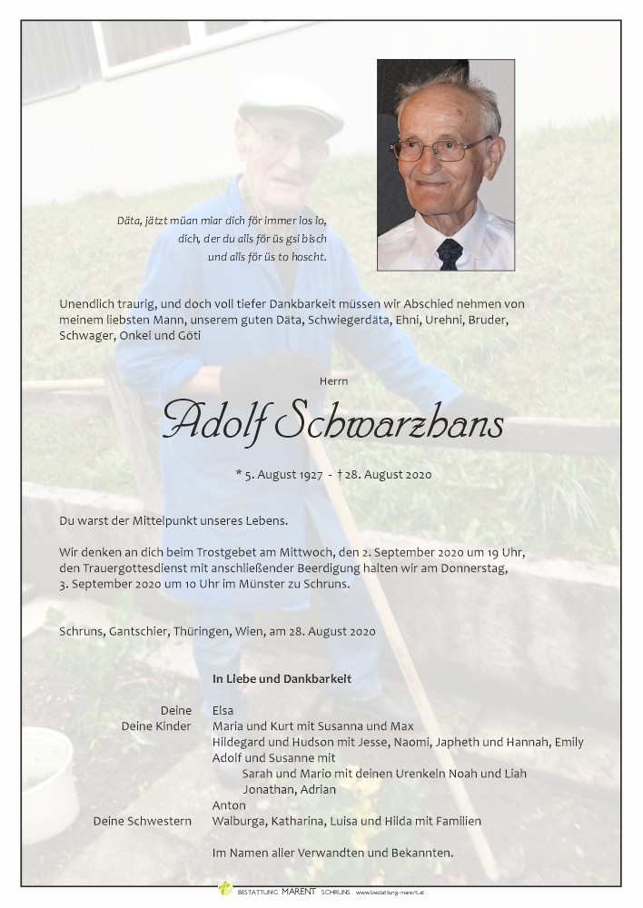 Friedhof Schruns, † 28.08.2020 (93 Jahre)