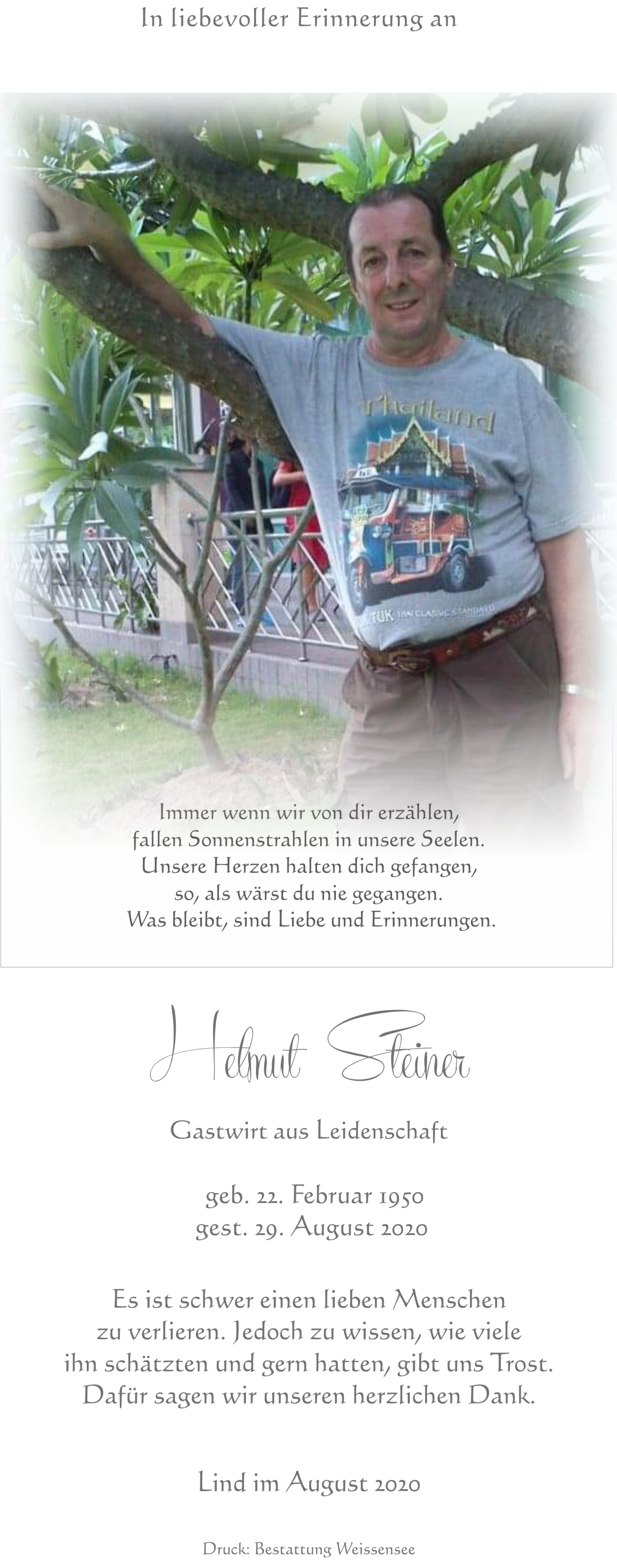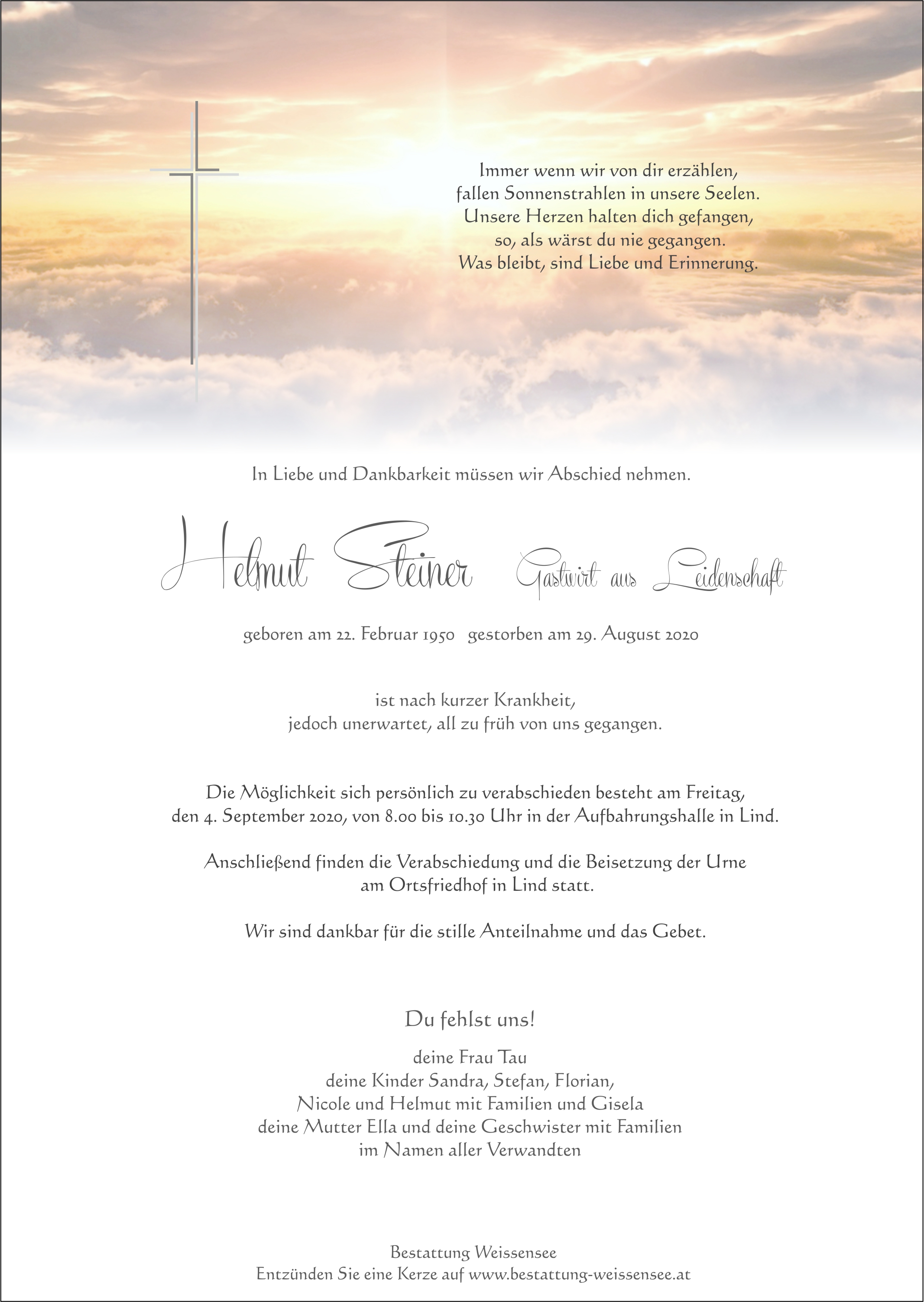 Friedhof Lind, † 29.08.2020 (70 Jahre)