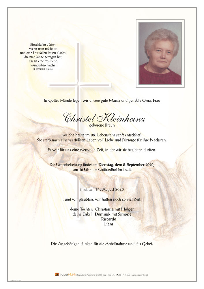 Friedhof Imst, † 31.08.2020 (85 Jahre)