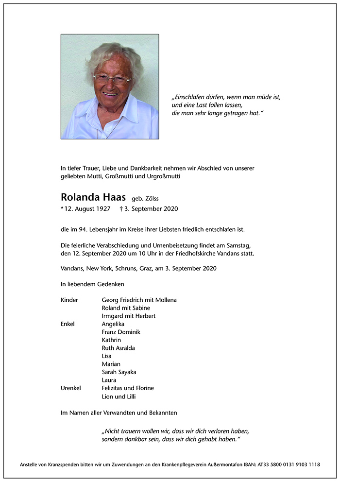 Friedhof Vandans, † 03.09.2020 (93 Jahre)