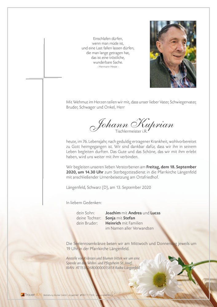 Die Erinnerungen an euren Johann sollen euch begleiten wir ein wärmender Sonnenstrahl!