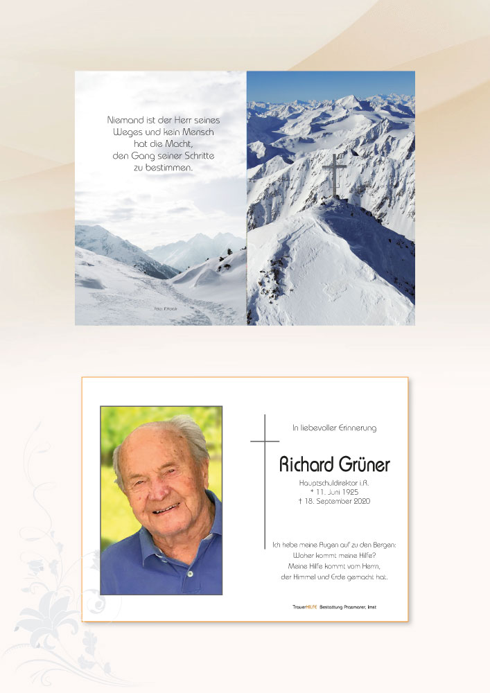 Dein Mann, euer Papa und Opa wurde nach einem erfüllten Leben voll Liebe für seine Familie von unserem Vater im Himmel zu sich gerufen.