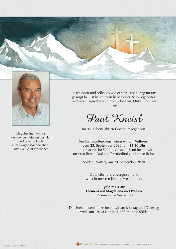 Friedhof Sölden, † 20.09.2020 (91 Jahre)