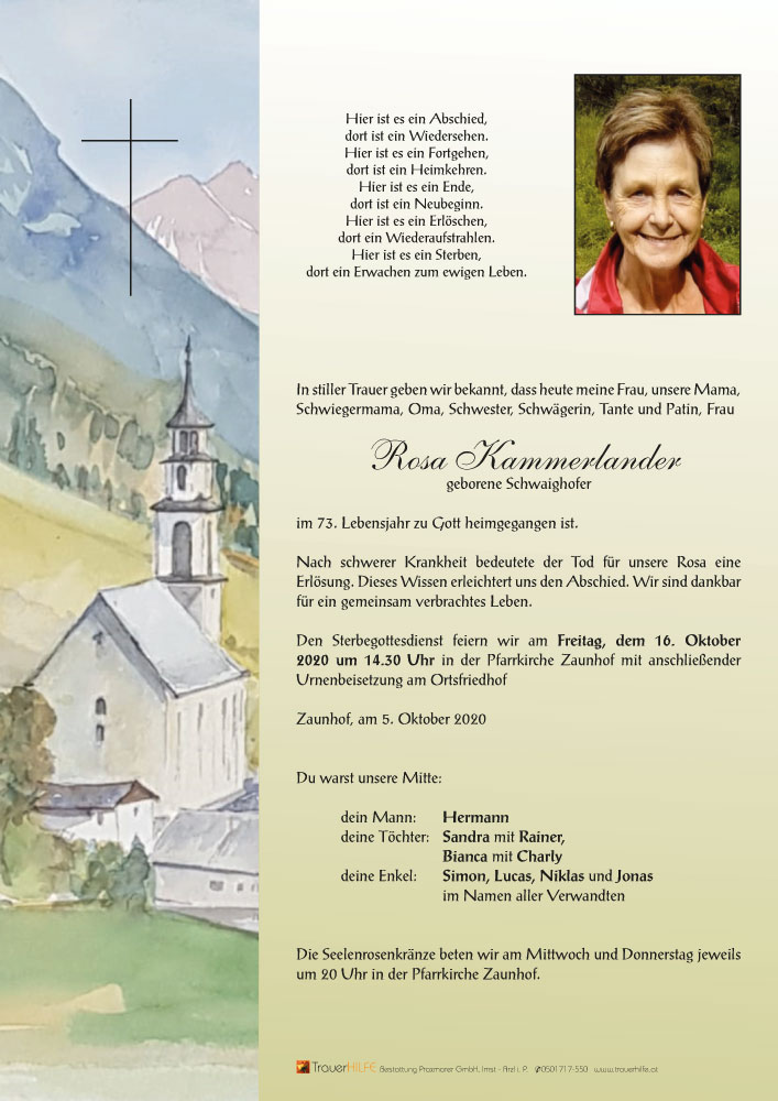 wo keine Schmerzen und Sorgen sind und bitte für sie, daß auch sie bei dir einmal