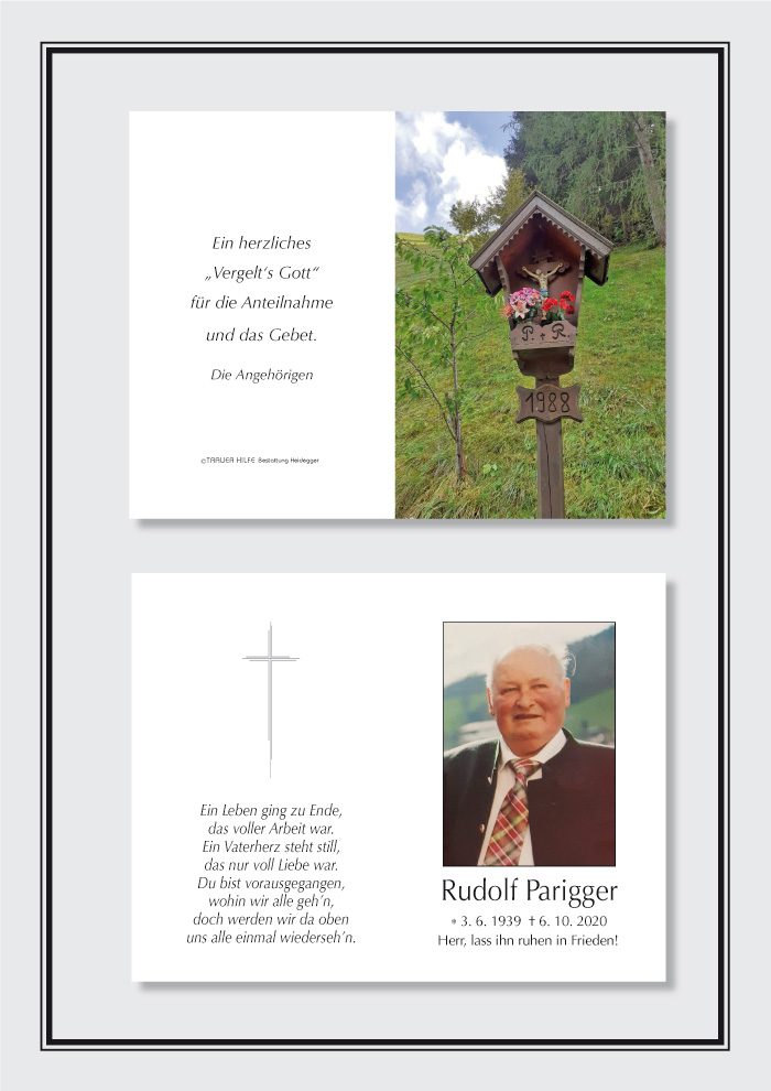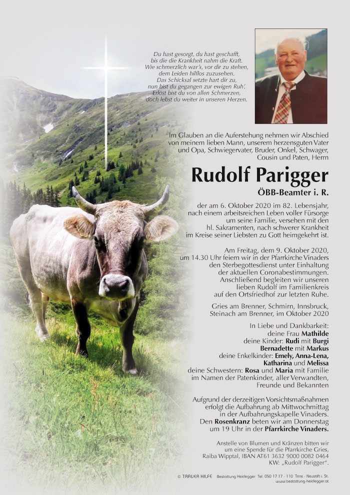 Bestattung wurde durchgeführt von: Karl Neurauter Karl Neurauter Bestattung Heidegger Brennerstraße 69 6150 - Steinach am Brenner Tel.: 05275 5211 zum Bestatter