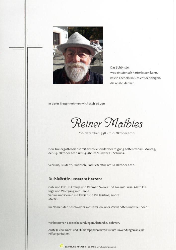 Friedhof Schruns, † 10.10.2020 (81 Jahre)