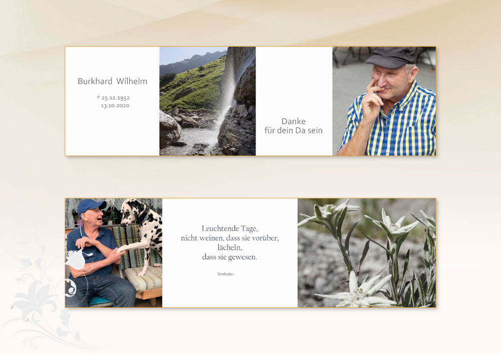 Liebe REBI und Trauerfamilie. Meine tiefe Anteilnahme zum schmerzlichen Verlust Eures so geliebten Papas. Ein kleiner Trost zu wissen, daß er von allem Schmerz befreit ist. Wieder vereint werden Euch Eure Eltern weiter durch's Leben begleiten und beschützen. Viel Kraft! In lieber Verbundenheit - Gerda (Mayer-Walch)