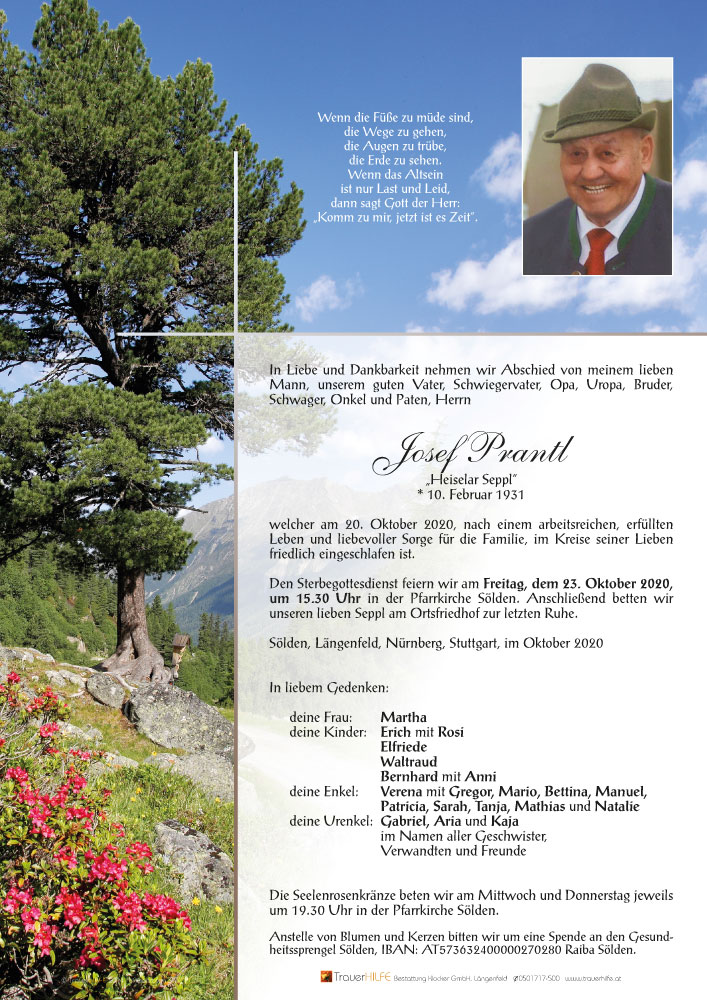 Aufrichtige Anteilnahme am Tode Eures lieben Josef entbieten Familie Scharfetter, Gasthof Andreas Hofer Umhausen.22.10.2020 20:15 - Familie Scharfetter Umhausen