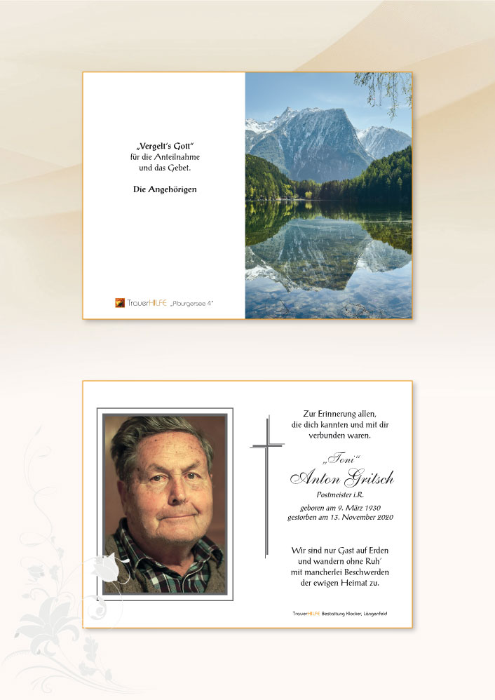 Wenn der Nebel dieser schweren Stunden sich lichtet, wünschen wir euch, dass die Erinnerungen an euren Toni bestimmt werden von Gedanken an glückliche Zeiten, schönen Ereignissen und fröhlichen Stunden.