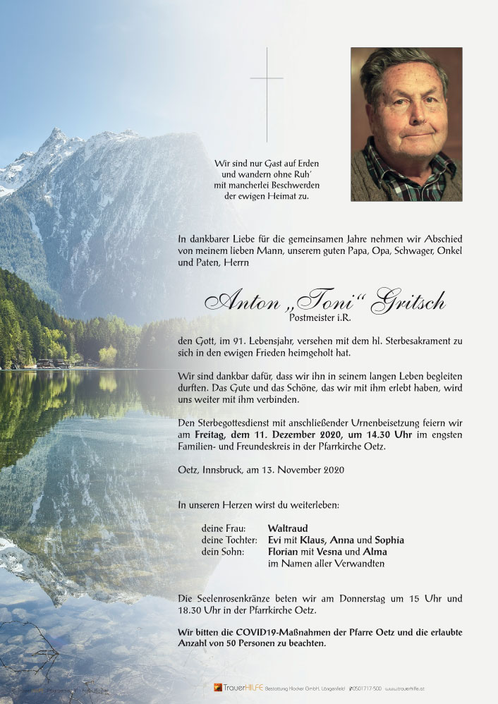 Aufrichtige Anteilnahme zum Heimgang von eurem Toni: