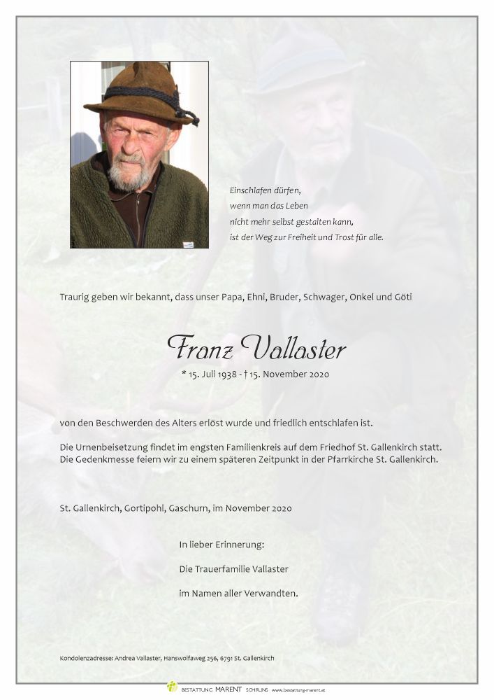 Friedhof St. Gallenkirch, † 15.11.2020 (82 Jahre)