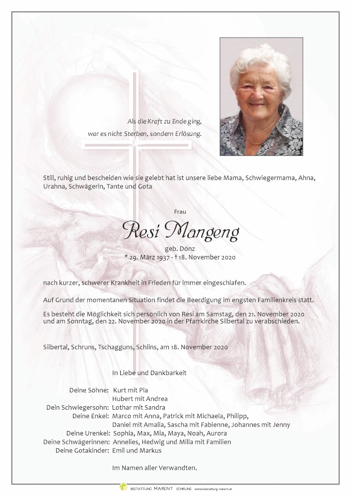 Friedhof Silbertal, † 18.11.2020 (83 Jahre)
