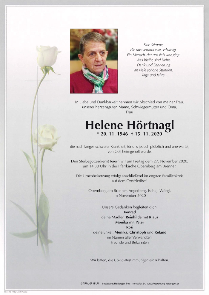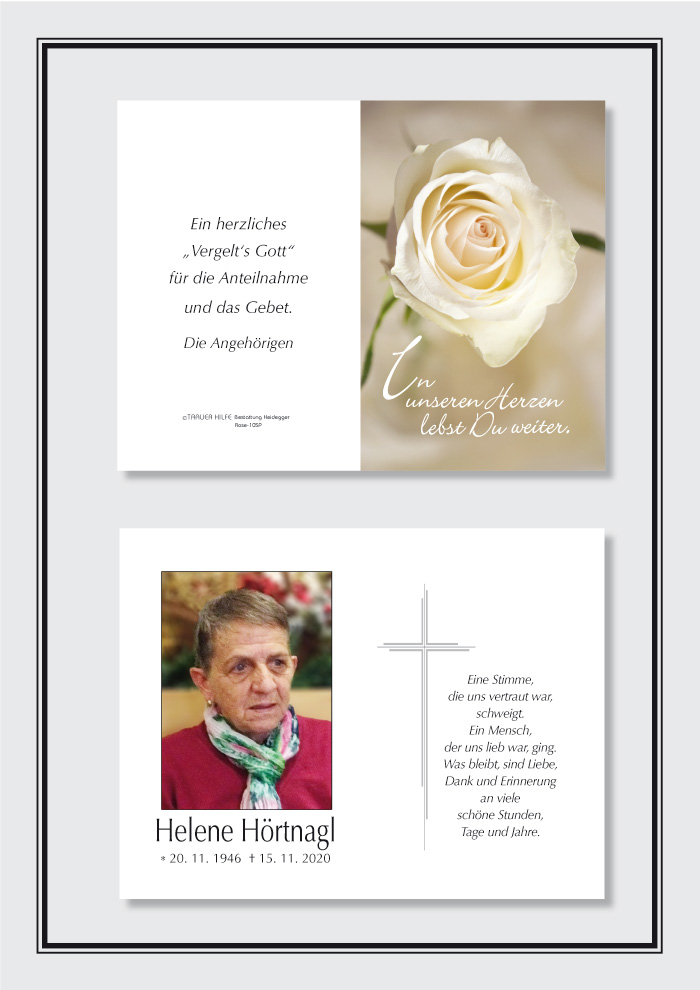 Aus tiefsten Herzen unser aufrichtiges Beileid. Helene, Ruhe in Frieden und pass guat au, af Deine Leit, oamol segma ins wieda!