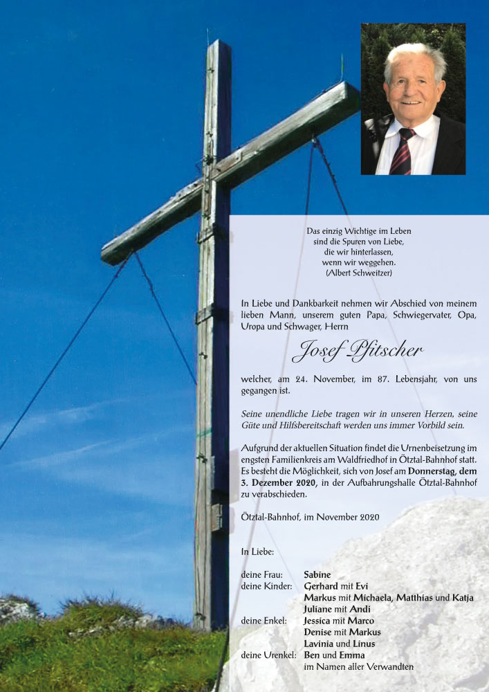 In Euren Herzen wird er immer sein. Wünschen euch viel Kraft in dieser schweren Zeit25.11.2020 16:31 - Rudolf und Angelika Thaler