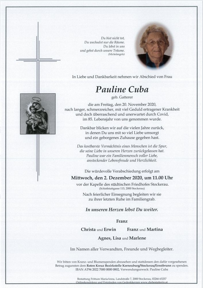 Friedhof Stockerau, † 20.11.2020 (84 Jahre)