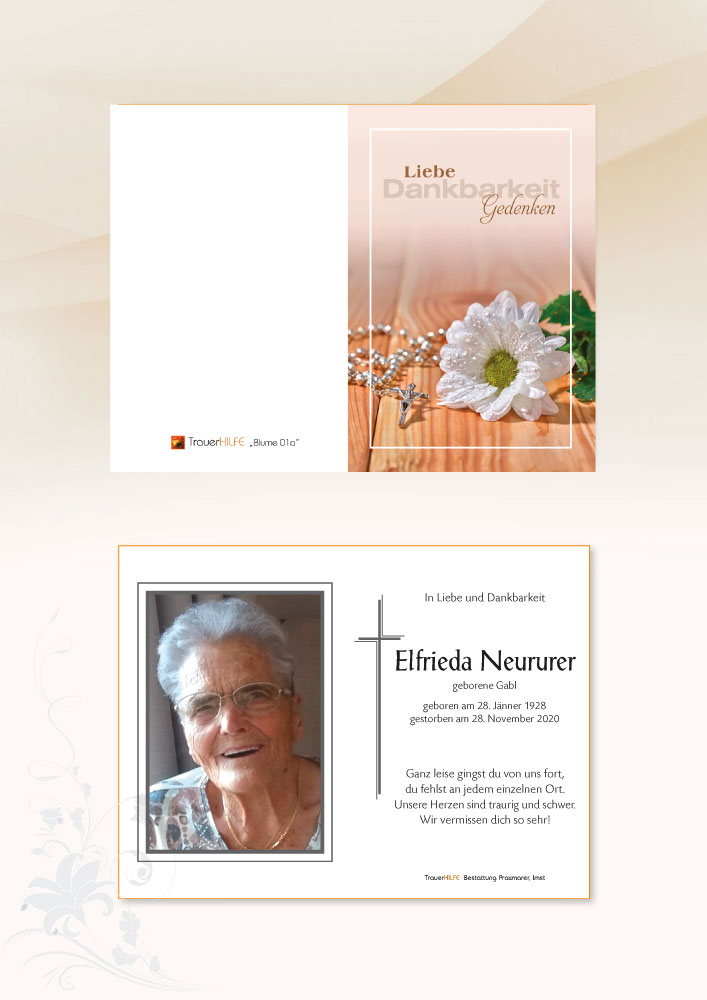 Wenn die Sonne des Lebens untergeht, leuchten die Sterne der Erinnerung. Liebe Trauerfamilie. Eure liebe Mama, Oma, Nale, hat den zur Mühe gewordenen Lebensweg beendet und ist voll Gottvertrauen zu ihrem Schöpfer zurückgekehrt. Schmerzlich werden wir Elfrieda am Stammtisch im Pflege Zentrum vermissen. Den Huangart über frühere Zeiten, aber auch die humorvollen Einlagen von ihr werden uns sehr fehlen. Wir danken ihr für ihr Dabeisein! In Gedanken begleiten wir Elfrieda auf ihrem letzten irdischen Weg, wir werden sie in lieber Erinnerung behalten. Herzliche Anteilnahme euch allen, die Stammtischrunde. Pepi, Erika u. Toni, Hilda, Irma, Cilli, Greti, Emma, Fini und Gerda