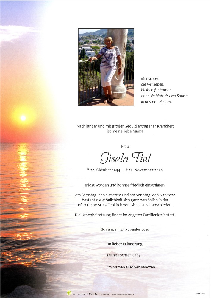Liebe Gisela, Ruhe in Frieden H. u. M. Fiel