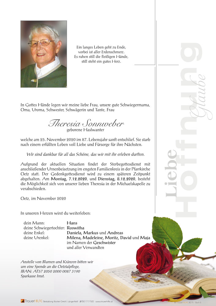 Neue Kerze für Theresia Sonnweber entzünden.
