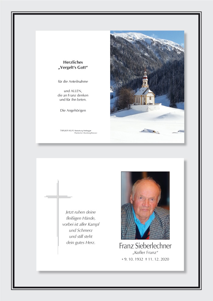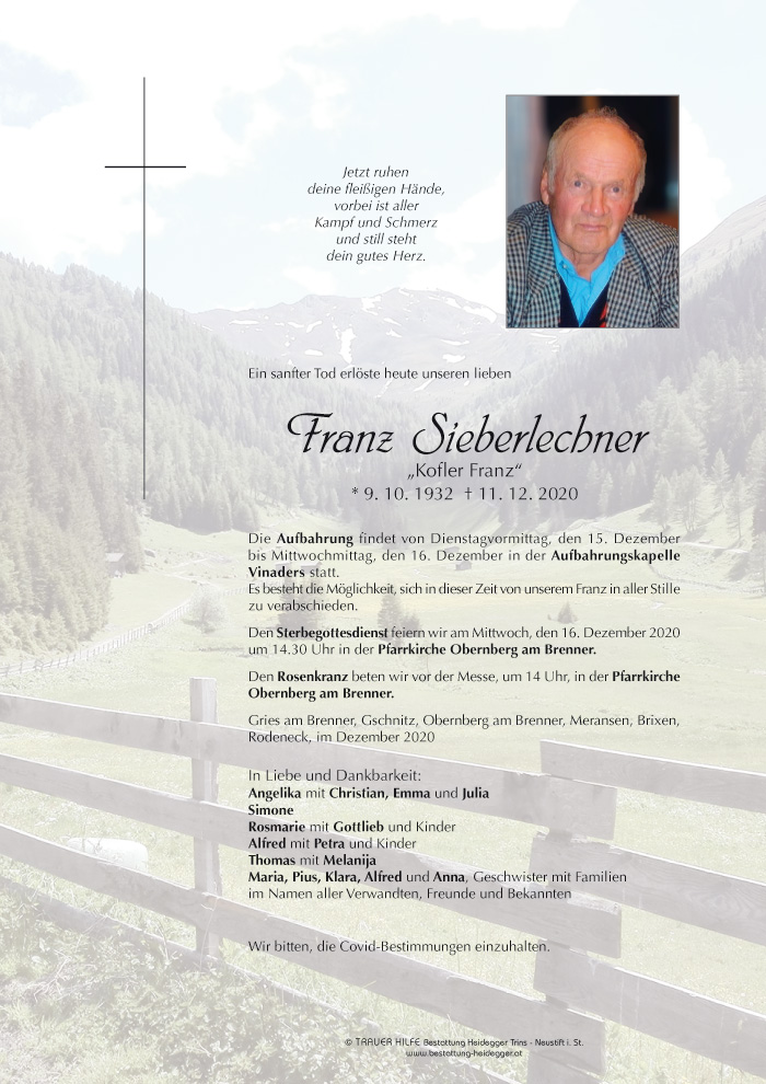 Ruhe in Frieden, Franz! Fam. Lercher, Brixen
