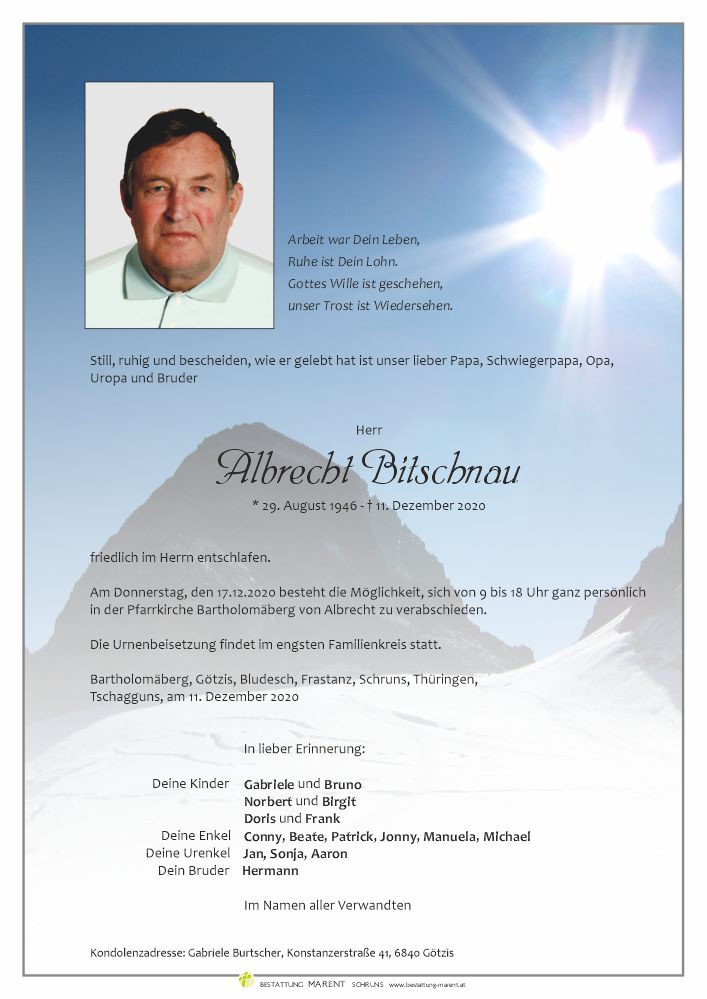 Friedhof Bartholomäberg, † 11.12.2020 (74 Jahre)