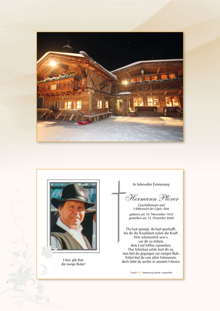 Wir möchten euch unser aufrichtiges Beileid zum Heimgang von eurem lieben Hermann aussprechen und wünschen euch für die kommende Zeit viel Kraft.