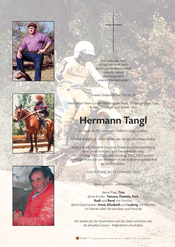 Liebe Trauerfamilie, ich wünsche euch von ganzem Herzen, dass die Erinnerung an wunderschöne gemeinsame Momente mit Hermann eines Tages die Trauer verdrängen wird und euch ein Lächeln auf die Lippen zaubert. Viel Kraft und Zuversicht wünscht euch Markus Umfogl mit Familie