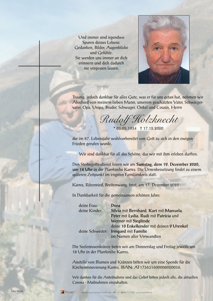 Unser aufrichtiges Beileid den Angehörigen.18.12.2020 21:05 - Fam. Gomig Josef und Johanna Imst