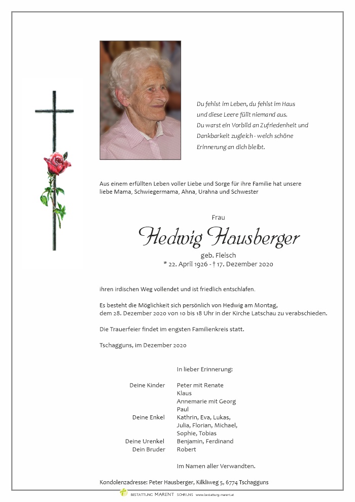 Friedhof Tschagguns, † 17.12.2020 (94 Jahre)