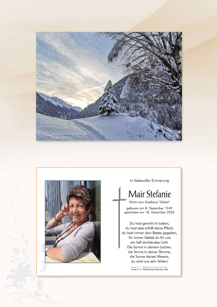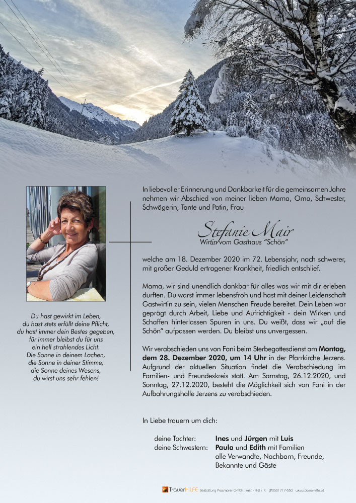Wir möchten euch auf diesem Wege unser innigstes Beileid aussprechen und wünschen euch viel Kraft und Zuversicht für die kommende schwere Zeit. Wir werden Fani in liebevoller Erinnerung behalten!22.12.2020 09:39 - Hansi und Maria Kaufmann