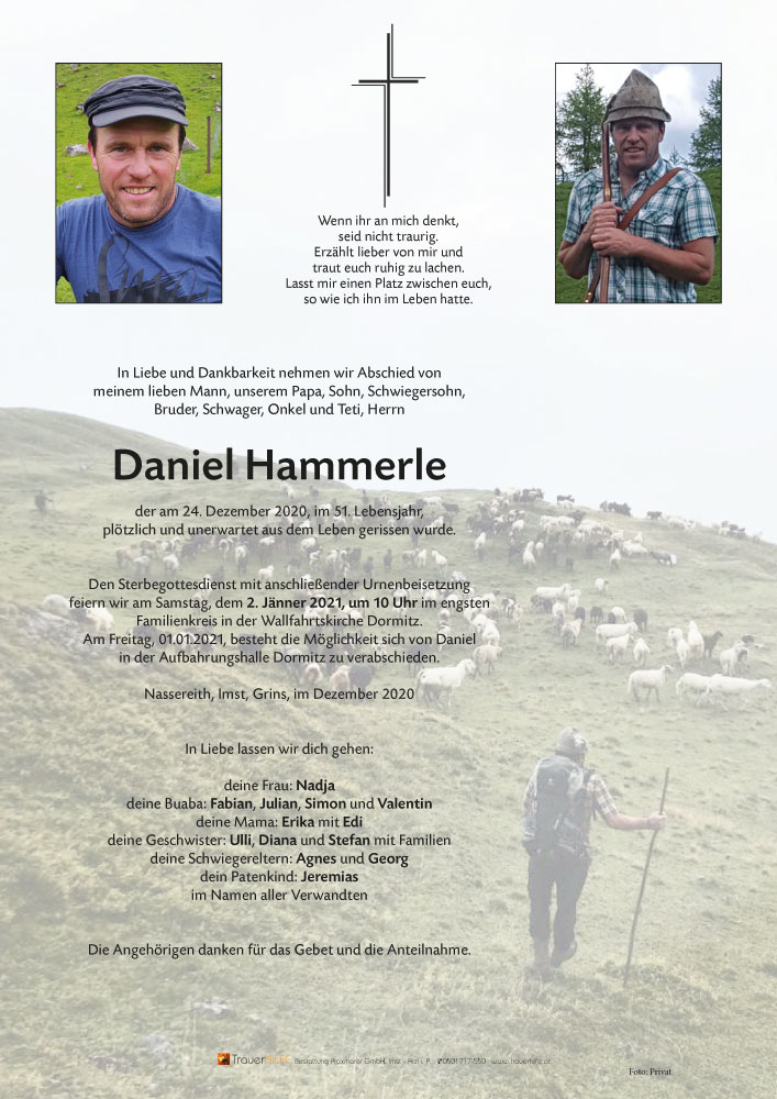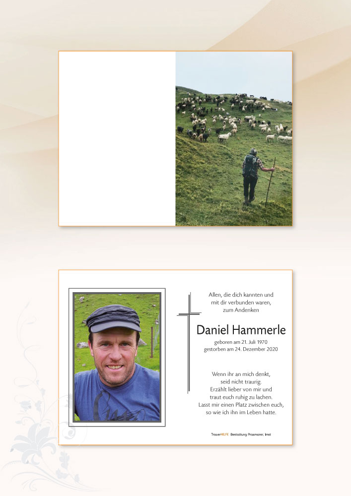 Dir Daniel wünschen wir eine gute Reise in den Himmel und viele Schafe zum hüten.