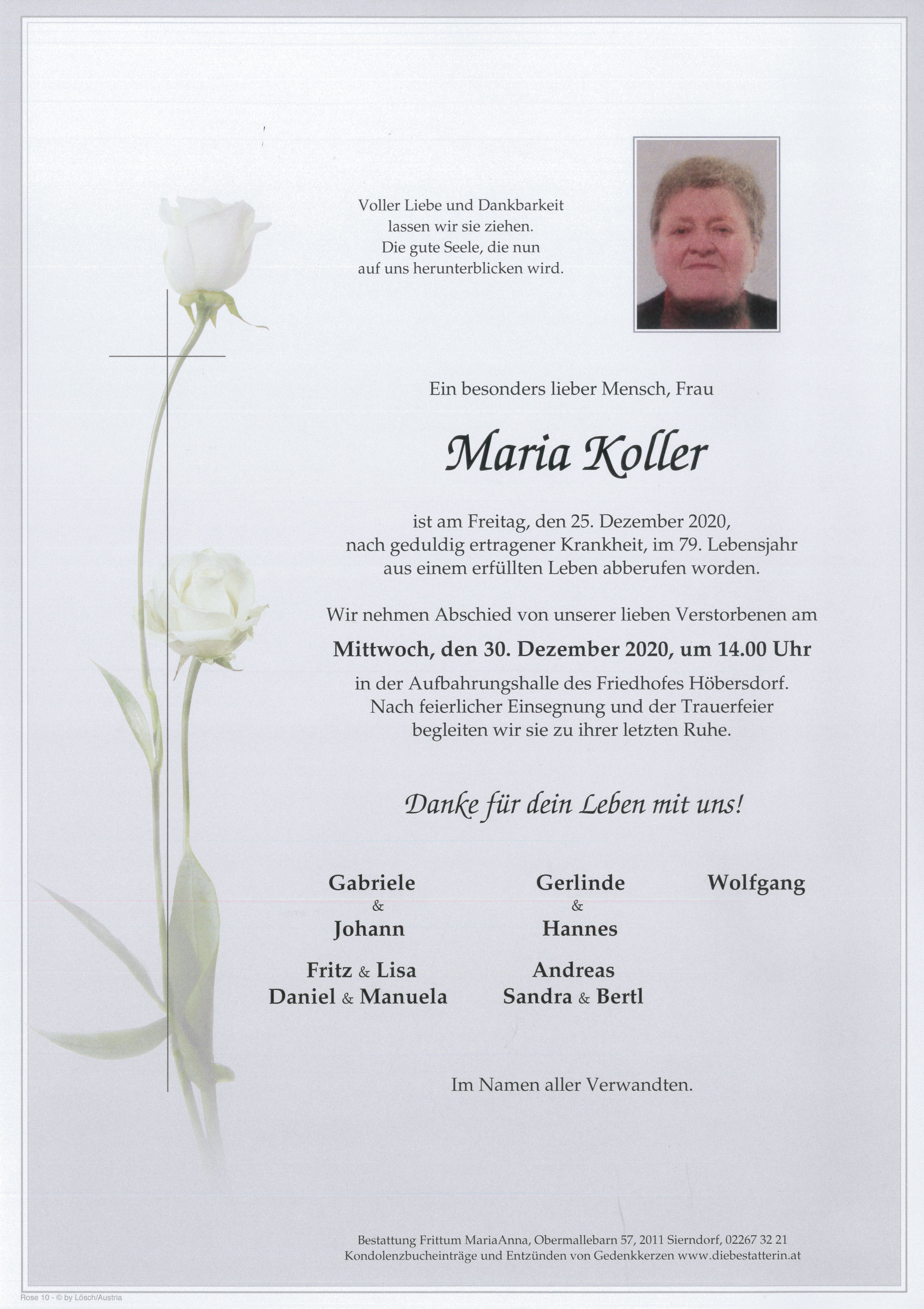 Bestattung wurde durchgeführt von: Frittum Maria Anna TrauerHilfe Bestattung Frittum Bahnstrasse 255 2041 - Wullersdorf Tel.: 050 1717-600 zum Bestatter