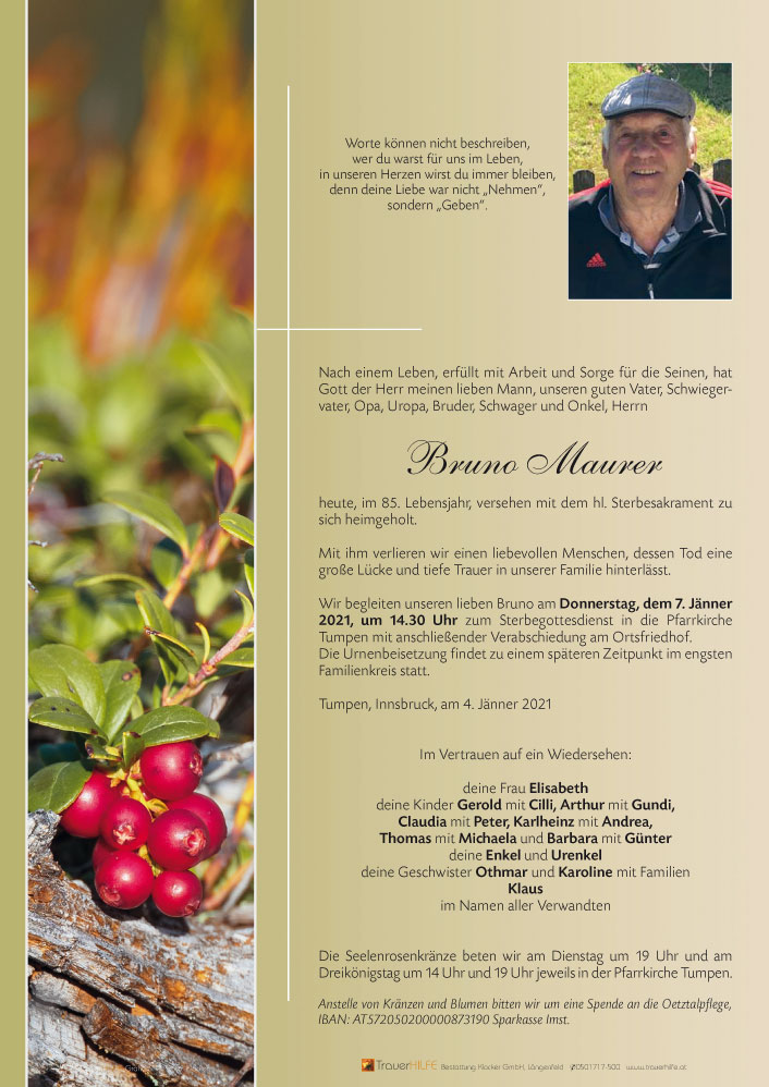 Im letzten Jahr hätte Bruno das 60jährige Verdienstzeichen des Landes Tirol im Feuerwehr- und Rettungswesen überreicht bekommen. Die Überreichung dessen war aufgrund der Corona-Maßnahmen leider nicht möglich.