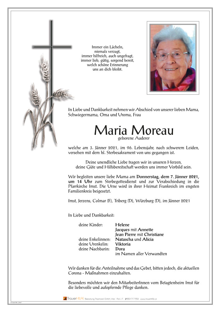 Hab ein gutes Ankommen in Gottes ewiger Heimat und finde dort Ruhe und Frieden. Pfiati Maria!