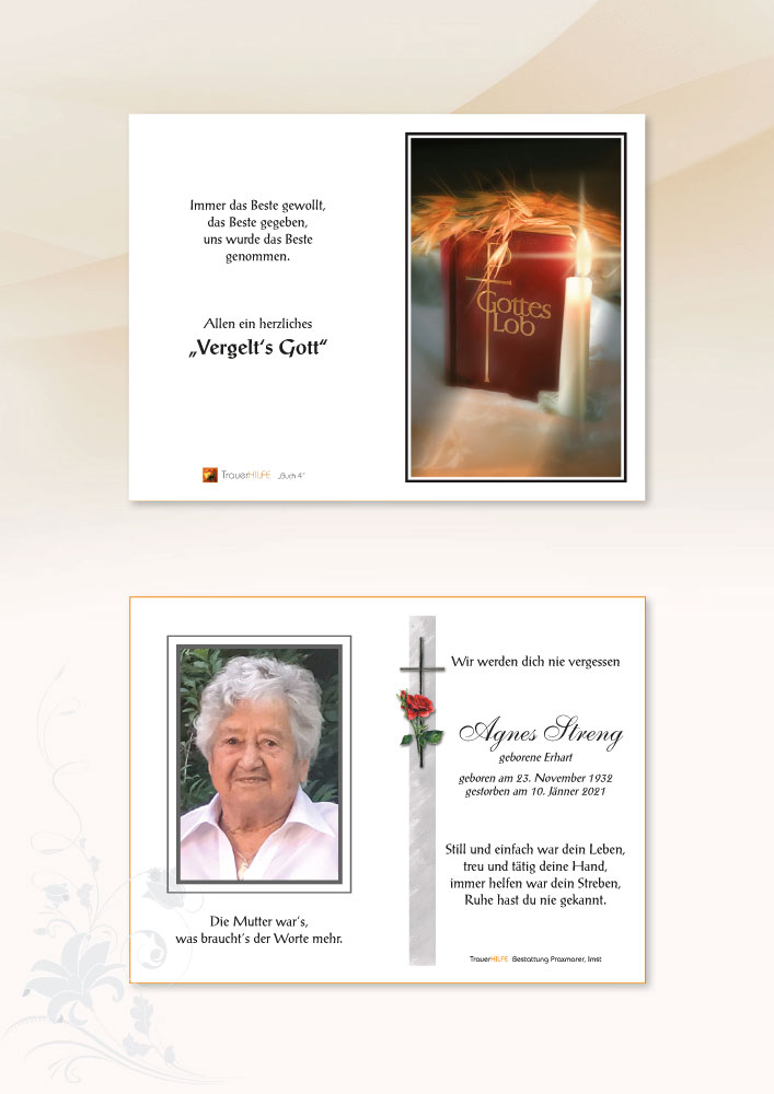Gottes Wille ist geschehen.Schön das ich dich kennen lernen durfte.Ruhe in Frieden Liebe Agnes.11.01.2021 17:04 - Zita aus Wenns
