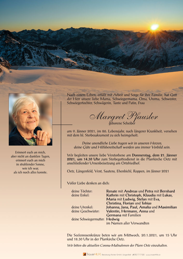 Wir möchten euch unser aufrichtiges Beileid zum Heimgang von eurer lieben Margret aussprechen und wünschen euch für die kommende Zeit viel Kraft.