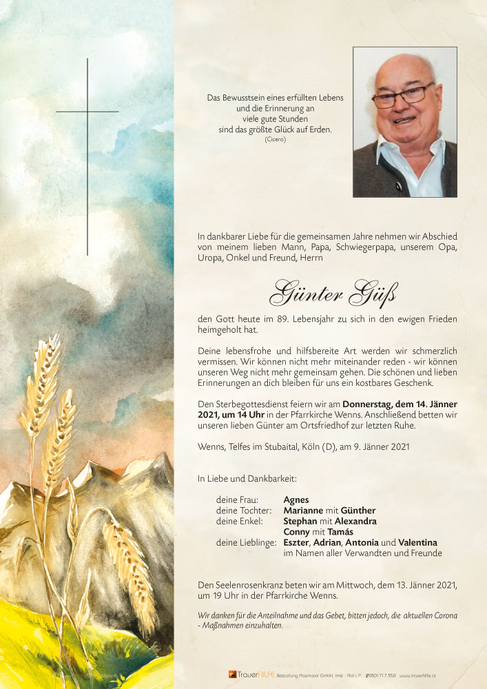 Liebe Agnes, liebe Marianne mit Günther, liebe gesamte Trauerfamilie!