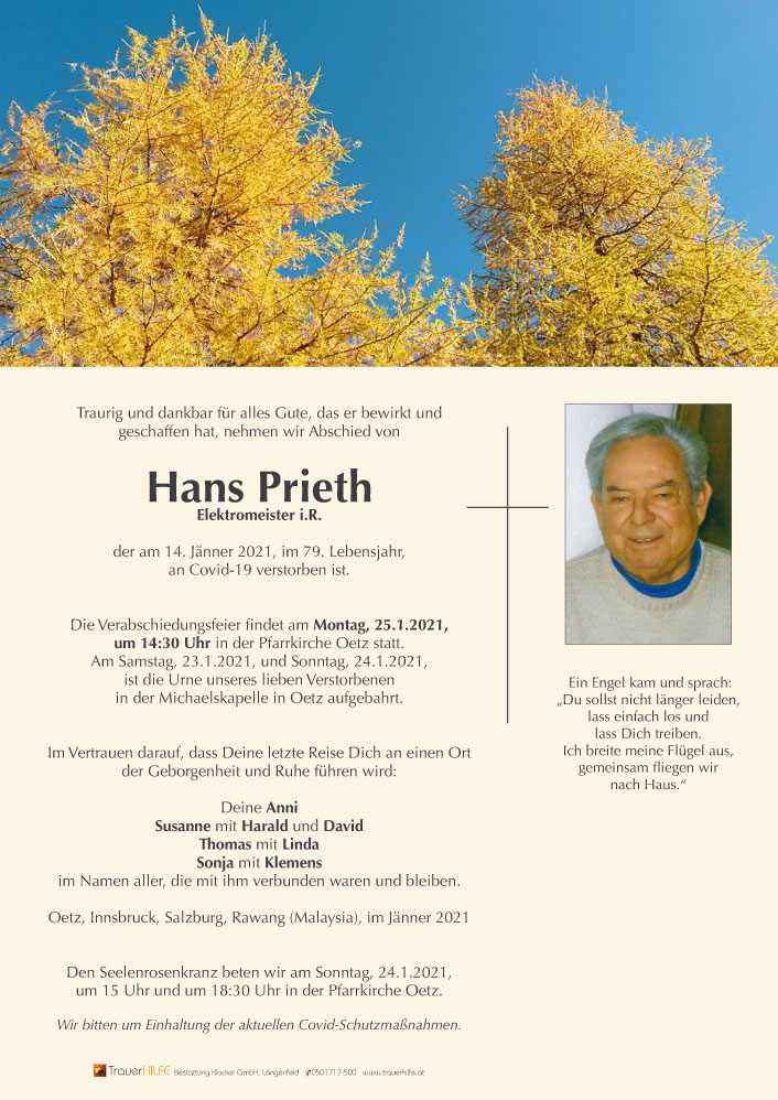 - Hans Prieth wurde von mir als Fachkollege und Bezirksinnungsmeister sehr geschätzt.