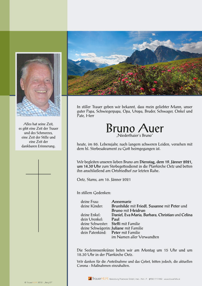 Aufrichtige Anteilnahme am Heimgang Eures lieben Bruno und viel Kraft und schöne Erinnerungen an ihn.