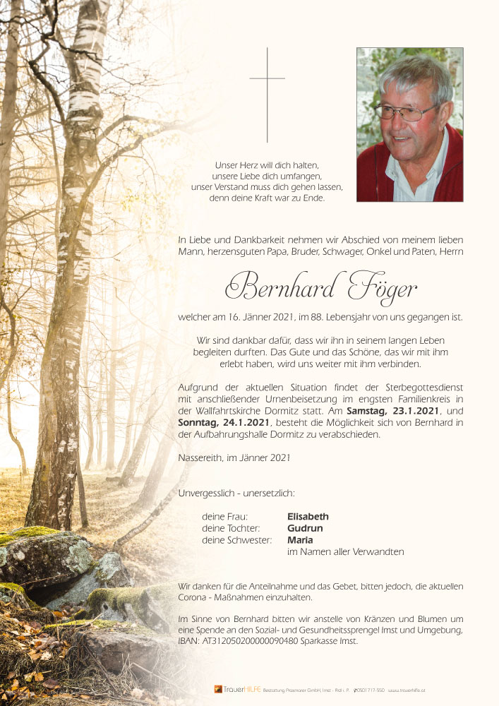 Wir behalten BERNHARD in LIEBER ERINNERUNG!