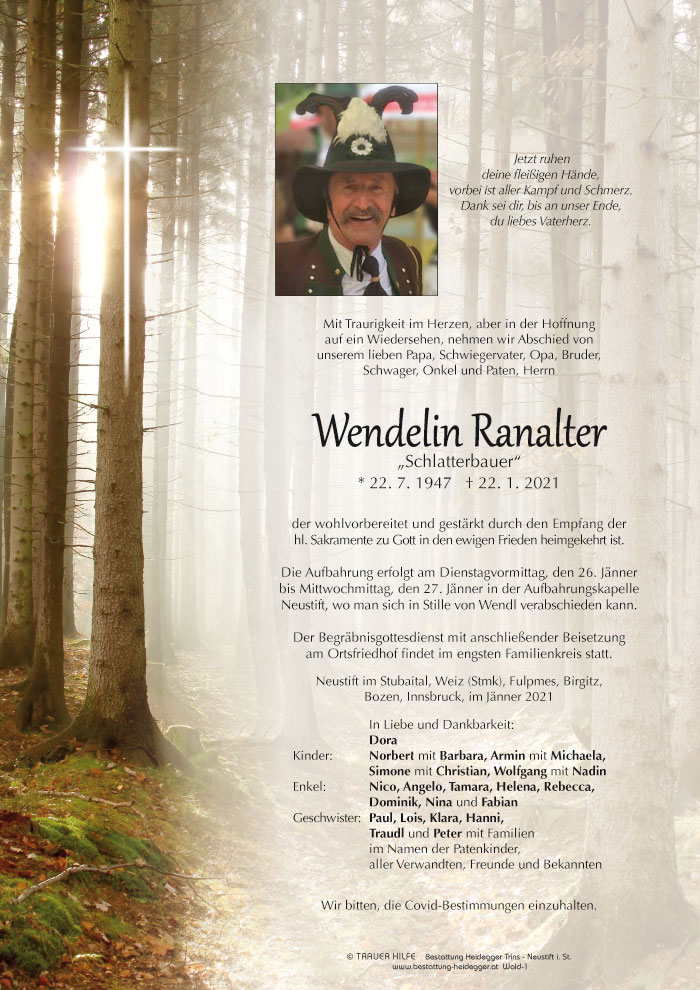 Unser aufrichtiges Beileid an alle Angehörigen.25.01.2021 18:18 - Gertraud und Sepp Oberguggenberger