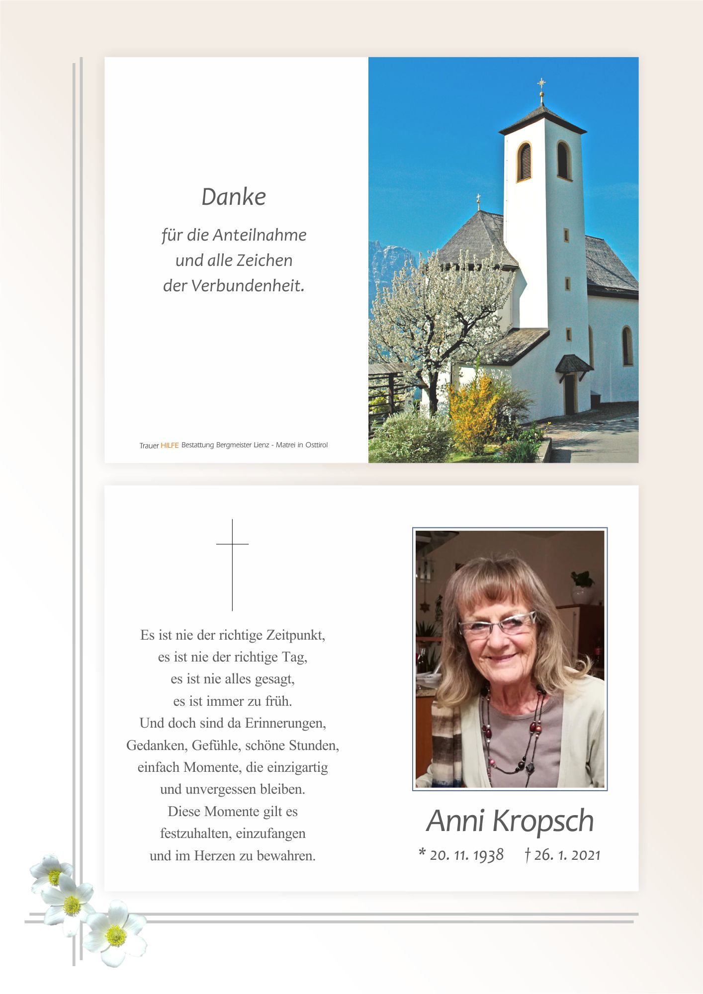 Hallo,Liebe Trauerfamilie!Wir werden Anni sehr vermissen!Sie war eine gute Freundin in unserer Runde!