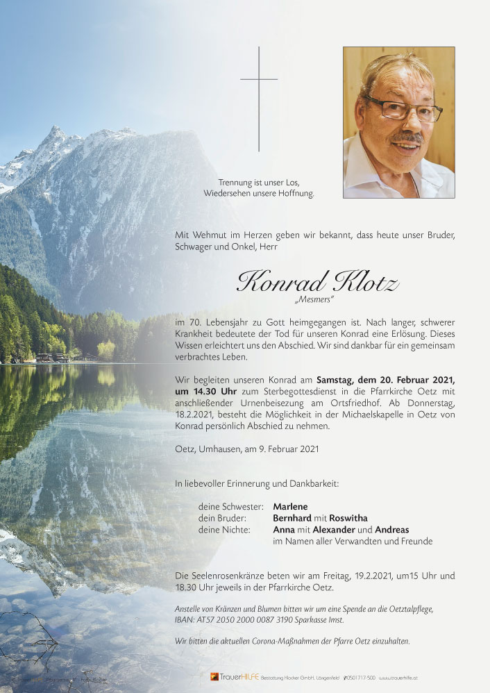 Zum Tod eures Bruders Konrad möchte ich euch mein herzliches Beileid aussprechen.