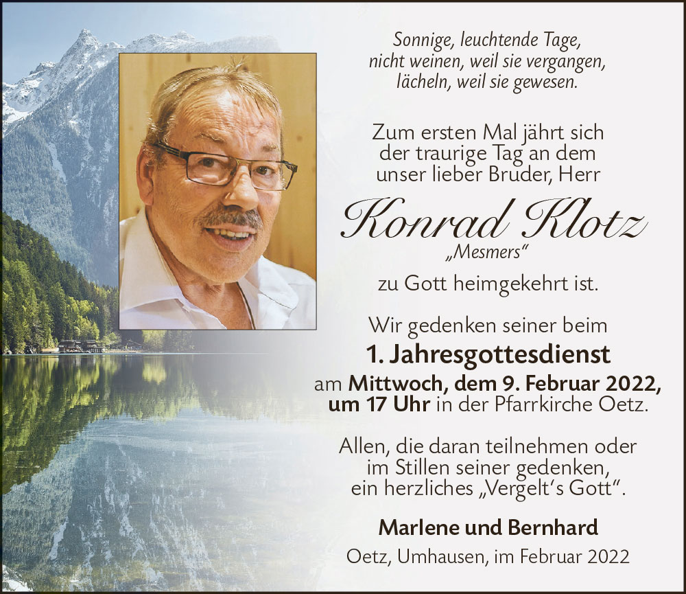 Im Namen der Musikantinnen und Musikanten der MK Oetz möchte ich euch zum Heimgang von Konrad unser herzliches Beileid aussprechen. Wir wünschen euch viel Kraft in dieser schwierigen Zeit und sind in Gedanken bei euch.