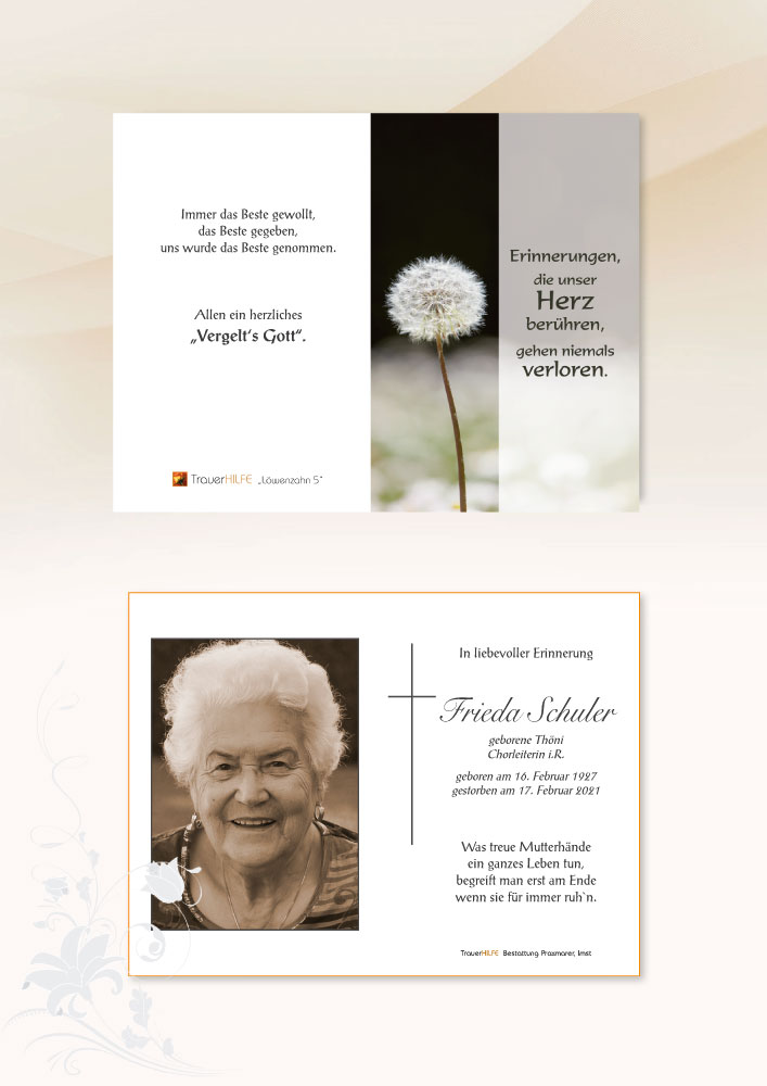 Eure geliebte Mutter ist eingeschlafen und hat ihren Frieden gefunden. Sie wird dir und allen, die sie gekannt haben, schmerzlich fehlen.