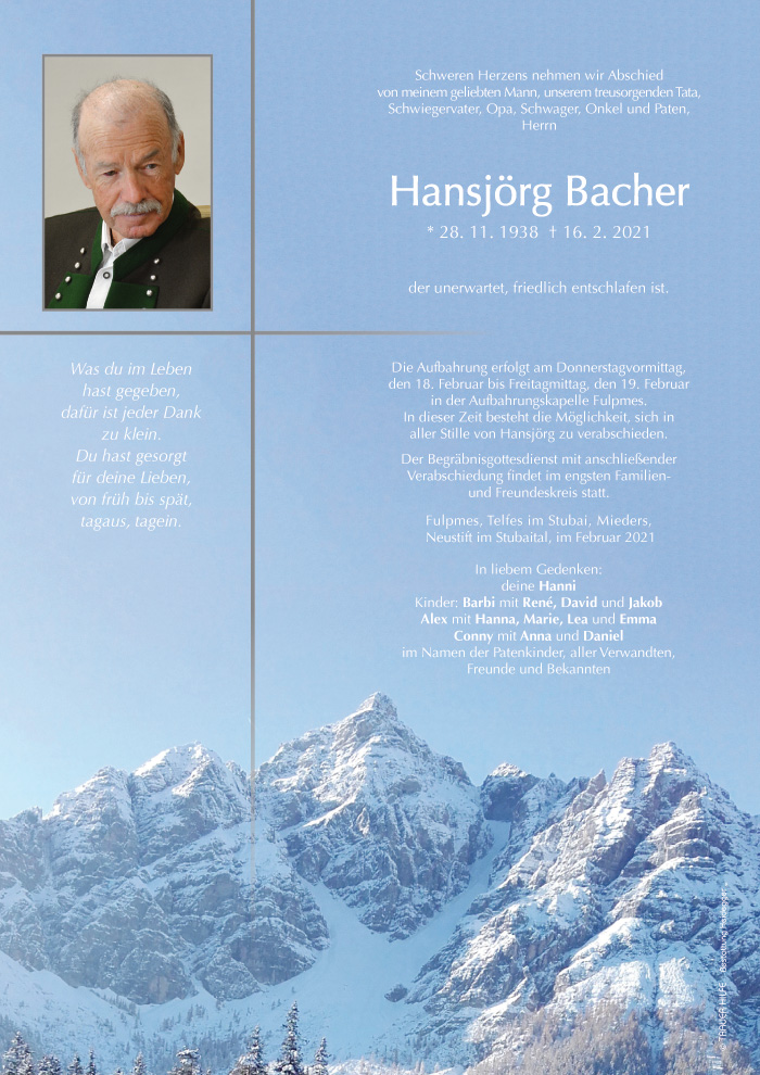 Friedhof Fulpmes, † 16.02.2021 (82 Jahre)