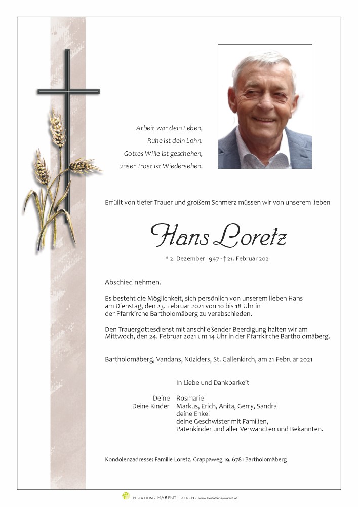 Friedhof Bartholomäberg, † 21.02.2021 (73 Jahre)
