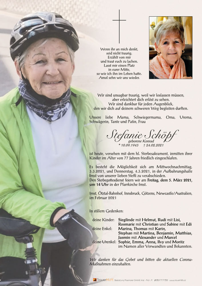 Unser aufrichtiges Beileid allen Angehörigen.26.02.2021 00:01 - Fam. Gomig Josef und Johanna